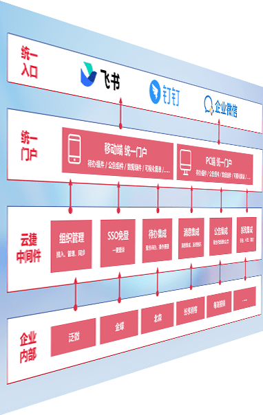 对协作平台提供支持服务,,,支持企业应用与协作平台对接,,,,包含组织同步、、、、消息集成、、、待办集成等。。支持目前主流的协作平台:钉钉、、企微和飞书。。。。